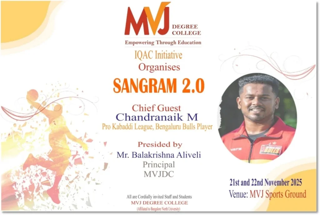The MVJ Degree College in collaboration with the Karnataka State Excise Department, organized a Drug Awareness Session on August 21, 2025, at the Dr. M V Jayaraman Auditorium. The event aimed to educate students on the ill effects of drug addiction and to promote a drug-free campus. The session was primarily conducted for the 5th […]